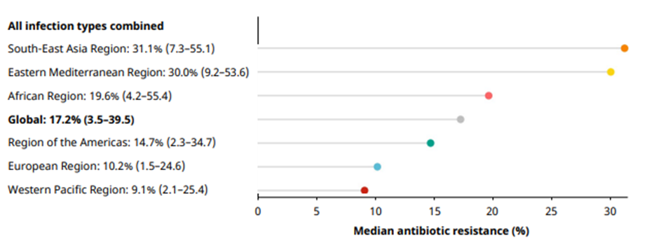 Die Probleme mit Antibiotikaresistenzen sind besonders in Ländern verbreitet, die ein eher schwaches Gesundheitssystem haben. Die Ursachen liegen etwa bei zu wenig Diagnostik oder mangelnder Finanzierung des Gesundheitssystems, welche zu falscher Anwendung oder zu kurzen Therapien führt. Dabei spielt auch die Hygiene in den Gesundheitseinrichtungen eine Rolle sowie der Mangel an Impfungen [3].